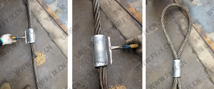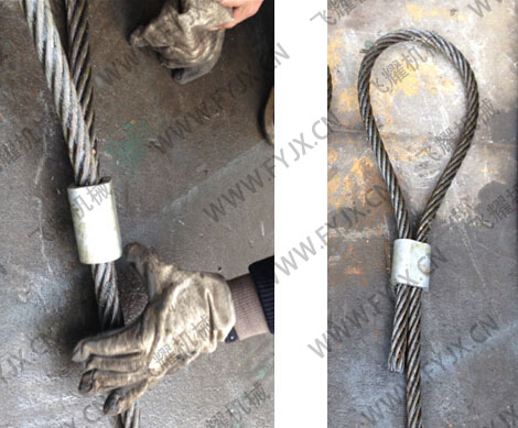 第一步 穿好需壓接的鋼絲繩,將鋁套穿入鋼絲繩內(nèi)
